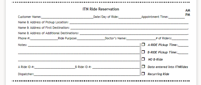 Riders can request rides through their portal, but many will call to book rides if given the option. You will have a ride reservation slip that you can use to capture all the pertinent information if you are not able to enter the ride into the system while talking with the rider.