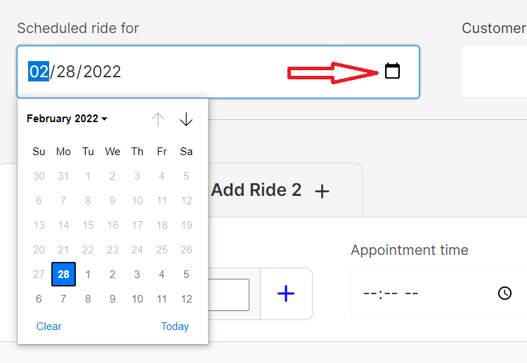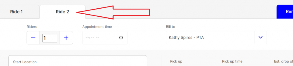 Click on the “Ride 2” tab to begin entering the second/return trip.