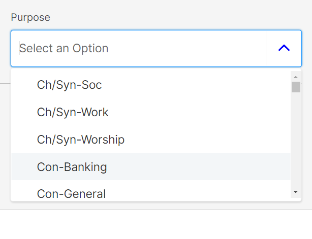 Choose the ride purpose. You can type into the box, or scroll through the list to find the purpose.