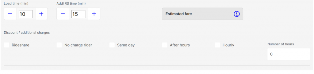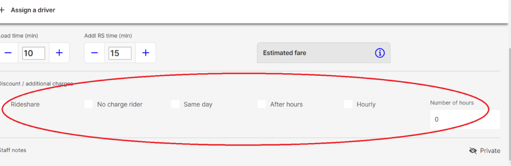 Use the Discount/Additional Charges checkboxes to select any that apply to the ride.  These include