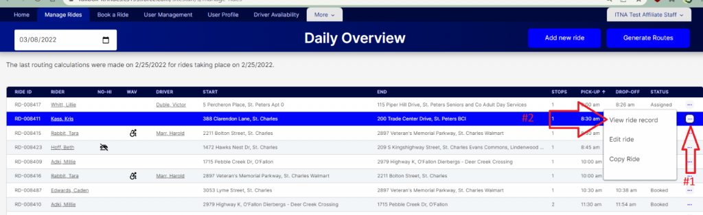 Click on the three dots at the end of the line for that ride, and choose View Ride Record.