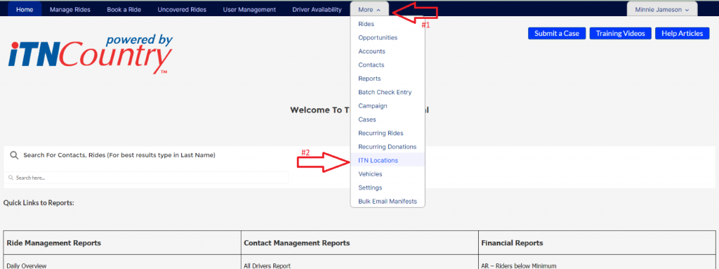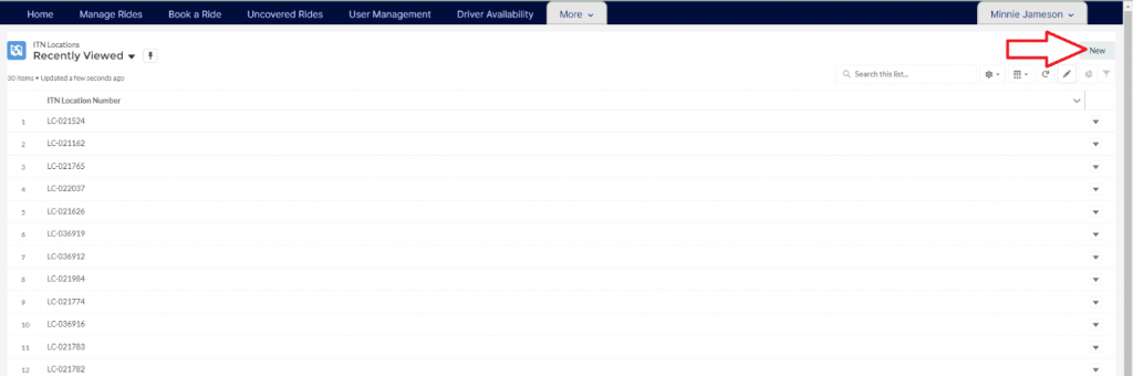 Open ITN Locations by navigating to the “More” Menu on the homepage and choosing ITN Locations.