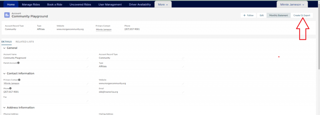 On the Account page, click the quick action button at the top right that says Create GL Export.  This will download the monthly GL Posting report.