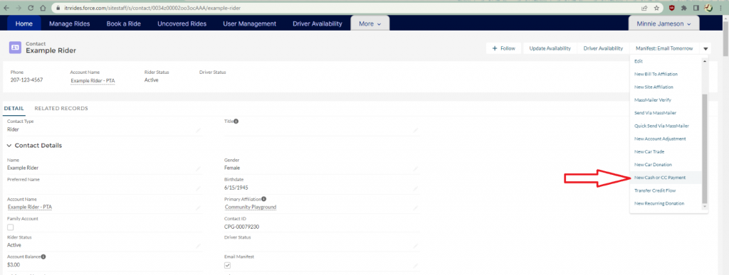 Open the rider’s Contact Record by searching for them on the Home Page or using the Contacts List.