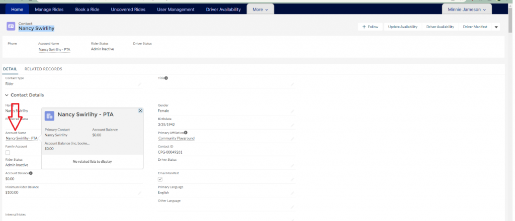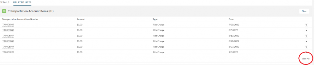 Click on the Account in the contact record. The Personal Transportation Account will open.