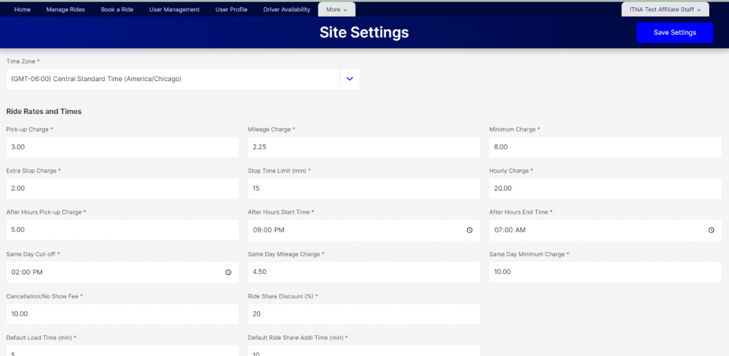 Settings with a small red asterisk are required, but may be set to $0.00 or 0. All boxes should have something in them, even if it is 0. No boxes should be blank.
