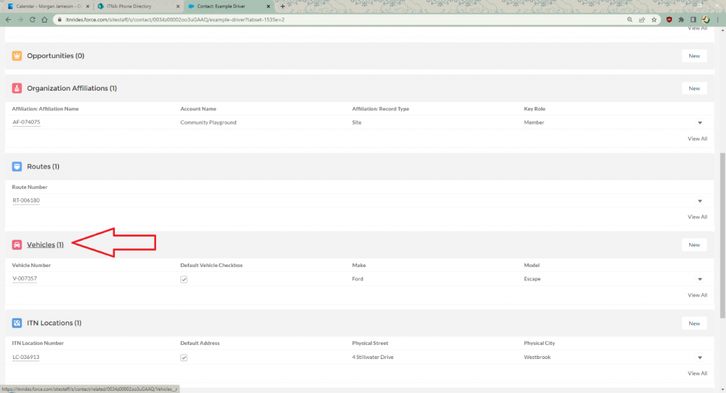 Scroll down to Vehicles. Some drivers will have entered a vehicle when completing the application. If the driver did not enter the vehicle, and gave you the information during their interview or training, you will enter it now. Even if the driver has entered the vehicle, you need to adjust the mobility aids and special needs matching information.