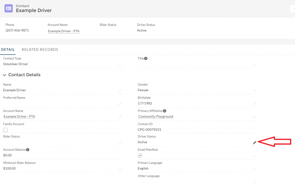 Return to the top of the page, and click the pencil next to the Driver Status field.