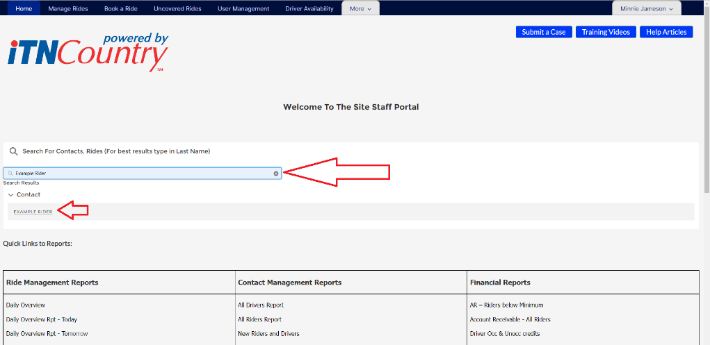 On the Home page, type the rider’s name into the search box.  The rider’s name will appear below as a Contact.