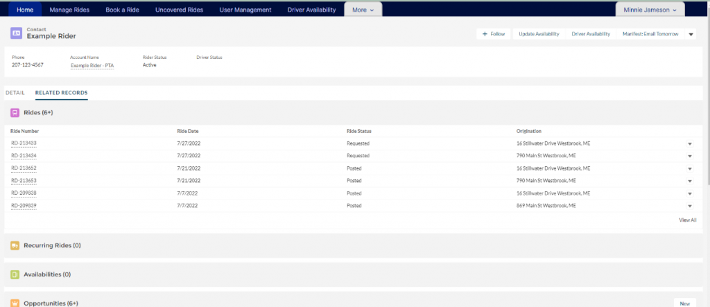 Open up the contact record for the rider.