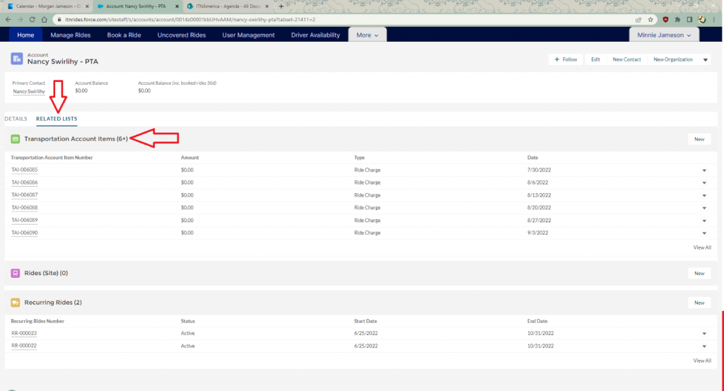 Click on the Account in the contact record. The Personal Transportation Account will open.